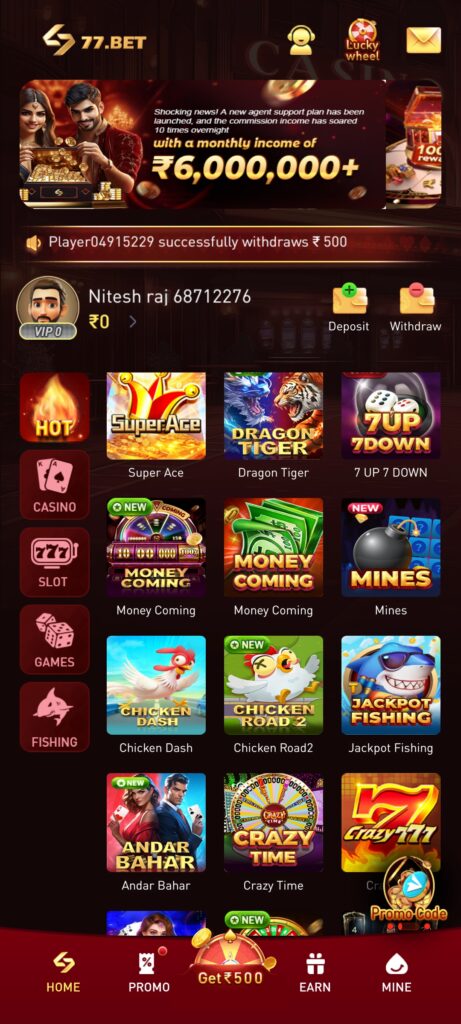 Hello friends, a new Yono 77bet app has been launched today. You can install this app on your mobile phone and earn money by playing games.