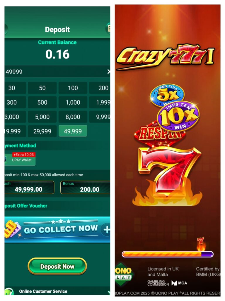 • 777 slot games (Money Coming, Fortuner Game, Crazy 777, Aviator)