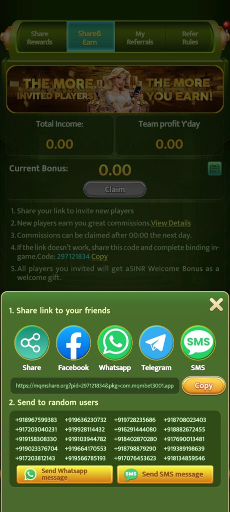 If you share this game with 1-50 of your friends, you will get free bonus rewards in four ways and you can cover your daily expenses by playing games with the free bonus money.