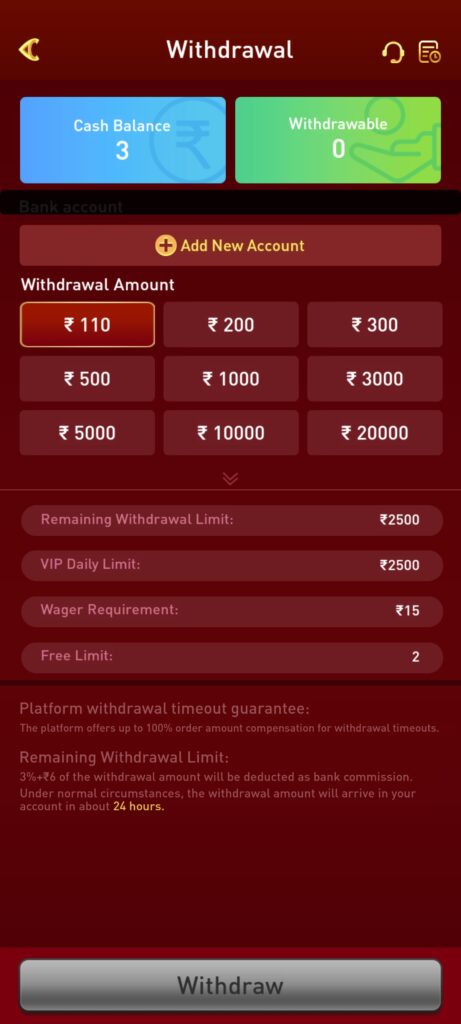 You can easily add your account to okmm game and win lakhs of rupees by playing the game and withdraw money from your account and the minimum withdrawal is ₹110.