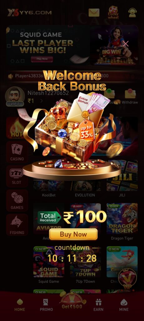 Hello friends, finally the apk has been launched for you, download YY6 Apk and as soon as you install it, you will get a cyno bonus of ₹ 500 and the minimum withdrawal is ₹ 110.
